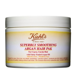 Blessed (or should I say cursed) with naturally curly hair that is prone to the frizzies, I am forever looking for products to recommend to other girls with thick unruly hair…and I am in lust with Kiehl’s Superbly Smoothing Argan Hair Pak.